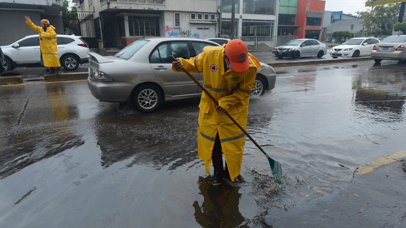 Ente las calles afectadas están la 49a. avenida Norte, en donde cuadrillas de trabajadores de la comuna de San Salvador han trabajado para destapar los tragantes saturados de basura.